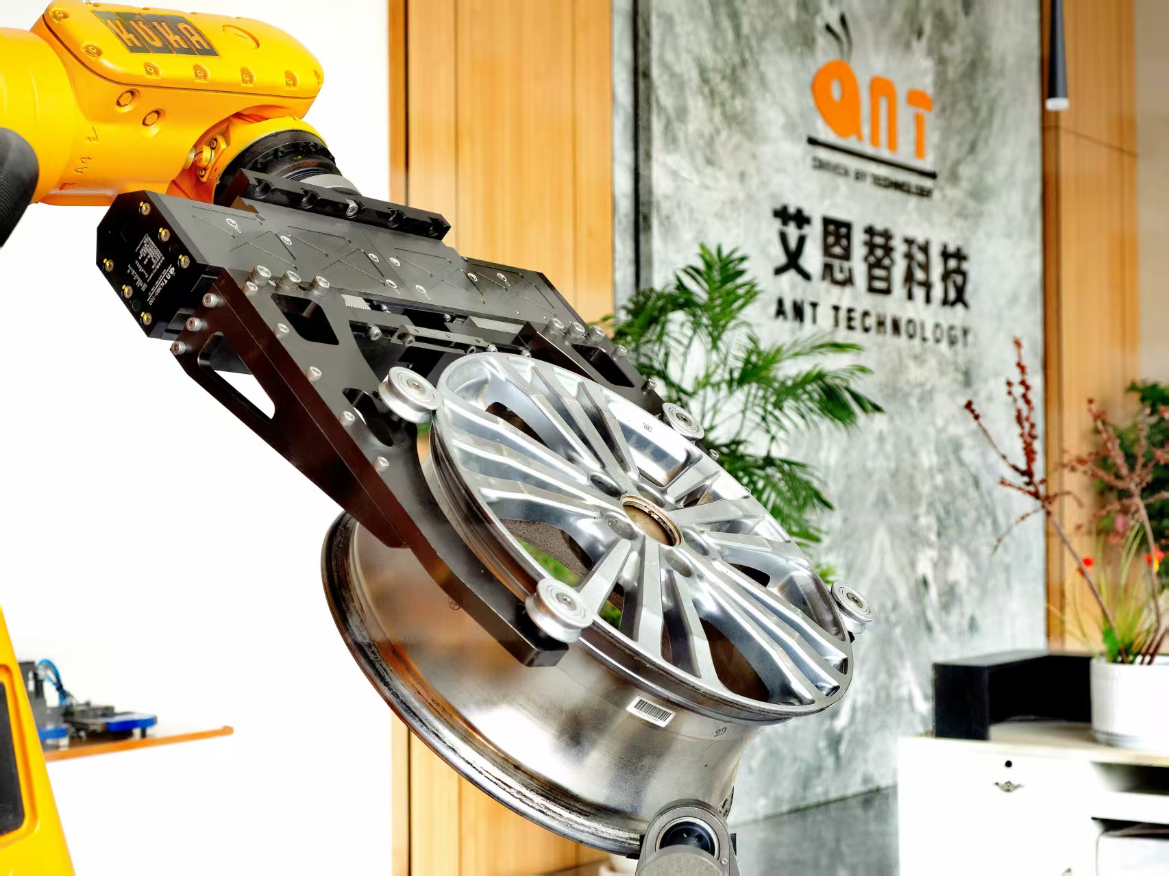 常州艾恩替机械科技有限公司副总工程师 薛永亮:它可以兼容13到22寸的轮毂,我们的手指可以设计得很长,兼容各种大型的手爪,可以在小尺寸到大尺寸(之间)免夹具更换。